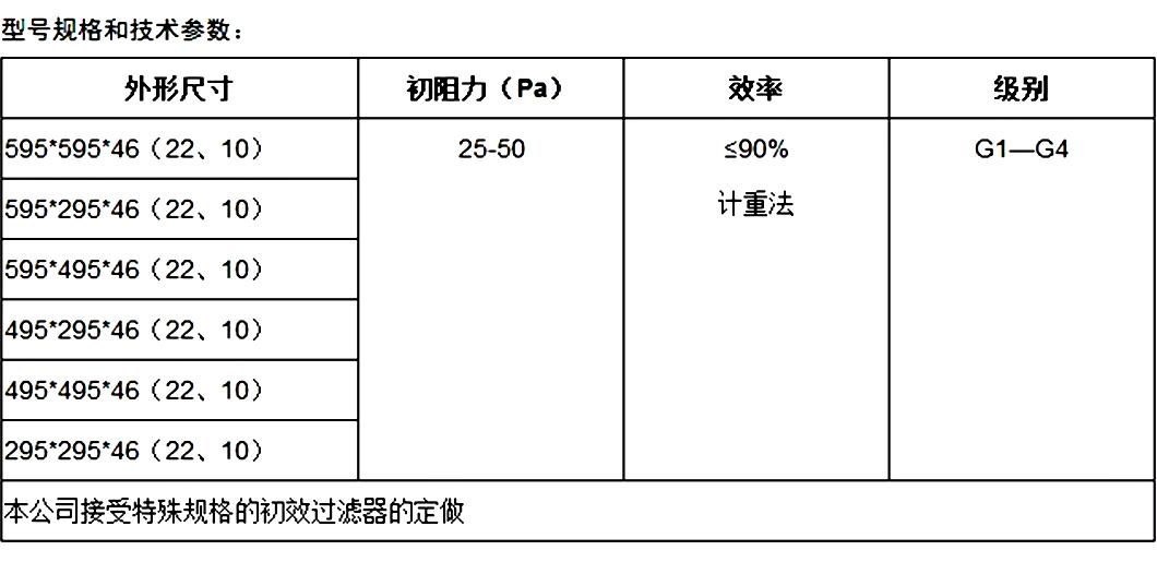 用途:适用于一般空调的初级过滤和净化系统的预过滤。
