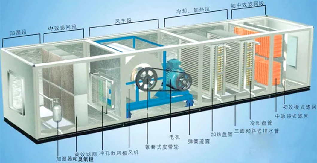 净化机组功能段的设置要根据生产工艺或洁净室要求确定,这是基本原则。净化机组功能段的合并及取舍要与空调房的设计紧密结合起来。